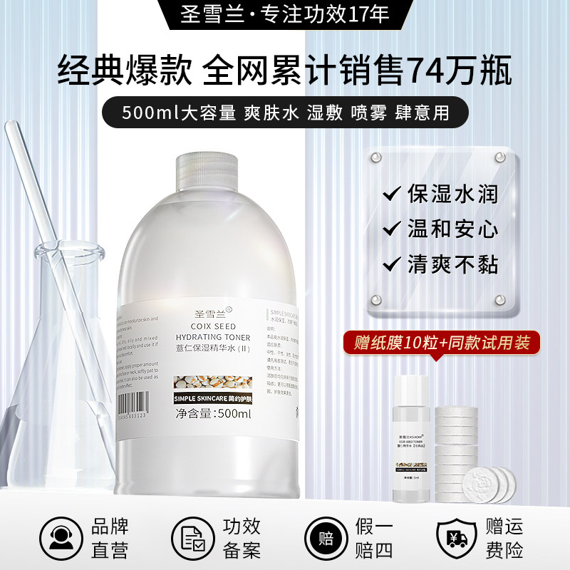 圣雪兰薏仁精华湿敷水薏米爽肤水女补水保湿清爽提亮男官方旗舰店