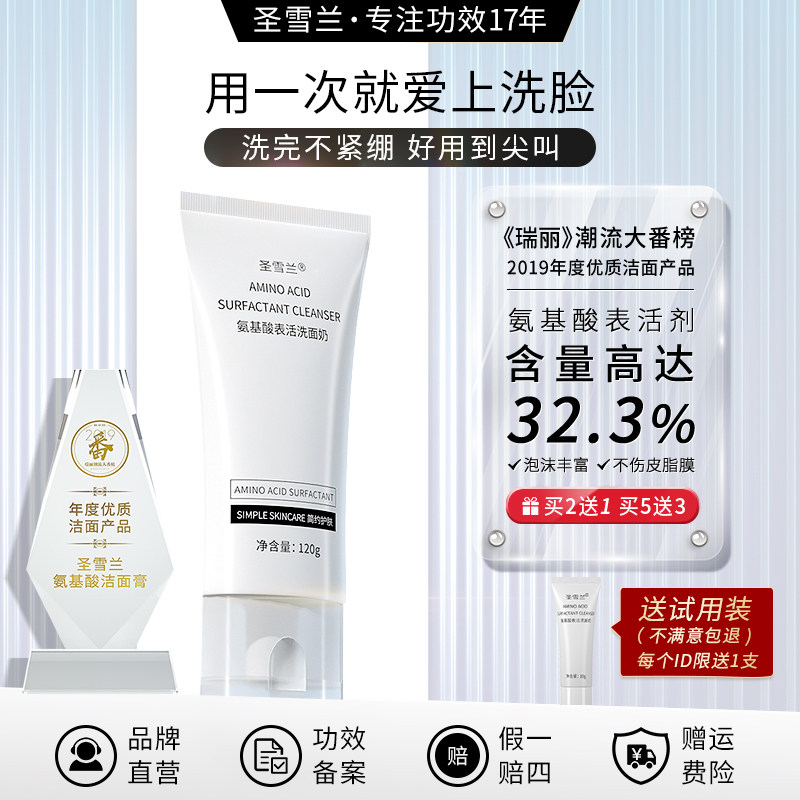 圣雪兰氨基酸洗面奶女无皂基深层清洁保湿控油不紧绷泡沫洁面乳男