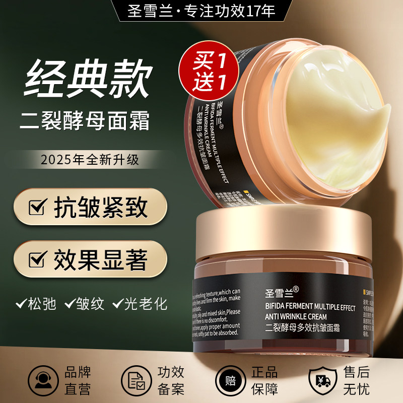 买1送1圣雪兰二裂酵母面霜保湿补水紧致提拉抗皱淡纹熬夜清爽不油