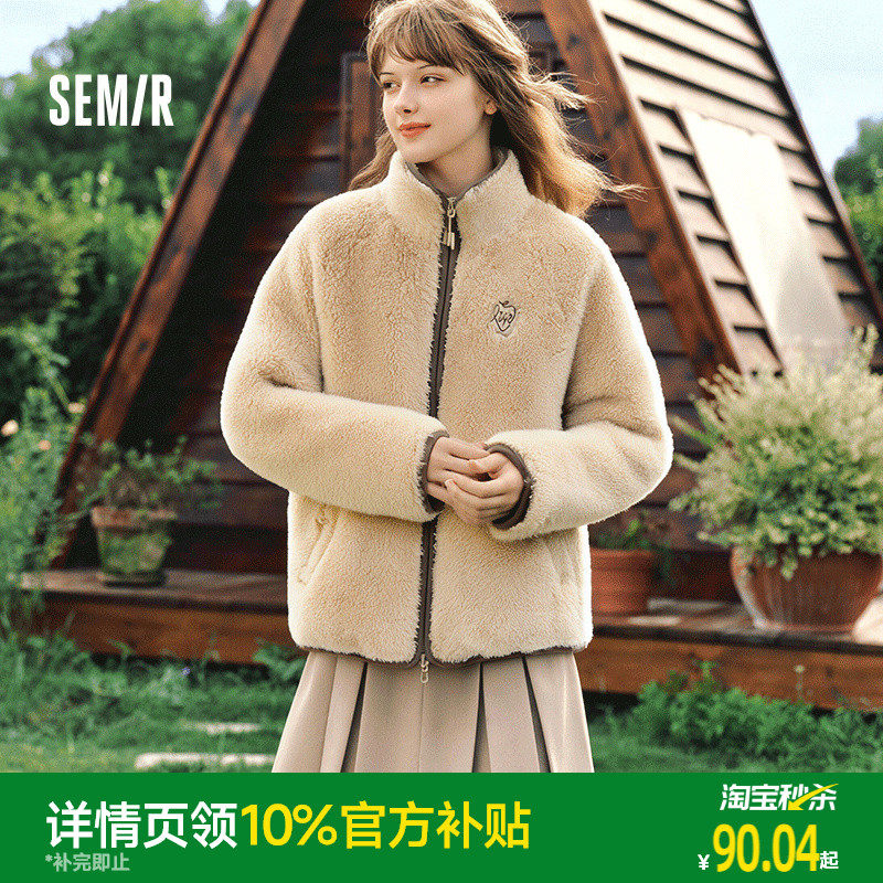 森马外套女冬季短款圆领修身仿羊羔毛仿麂皮夹克小个子小香风上衣