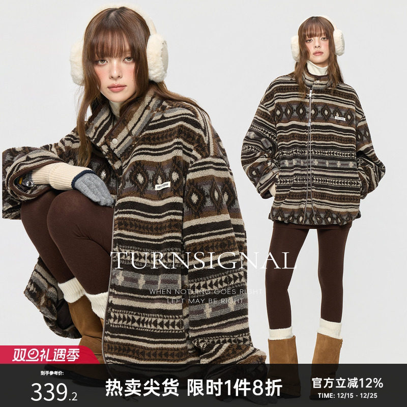 TurnSignal潮牌仿羊羔毛外套女秋冬2025新款休闲宽松时尚绒外套