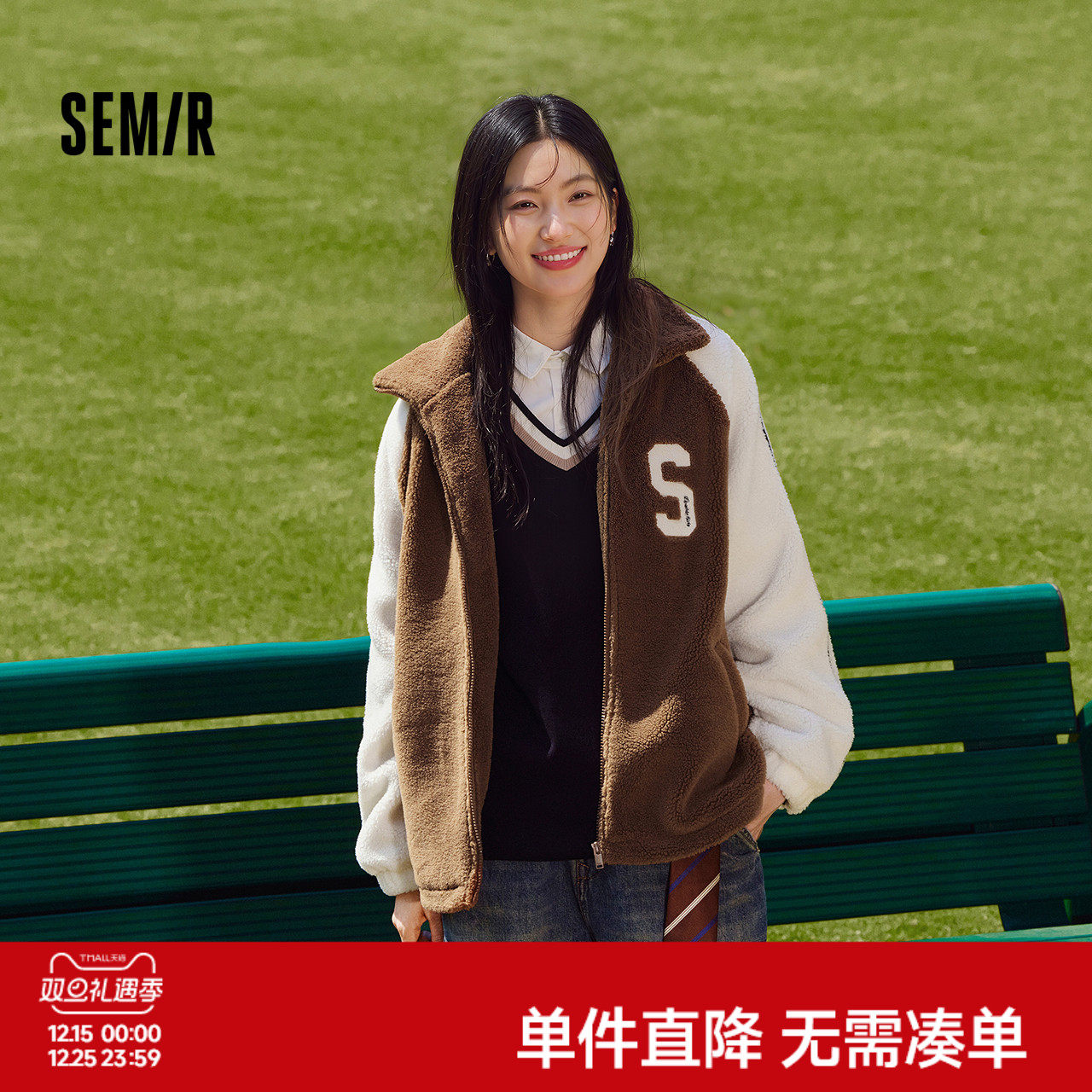 商场同款|森马外套女冬PU仿皮仿羊羔毛oversize分割2025新款夹克