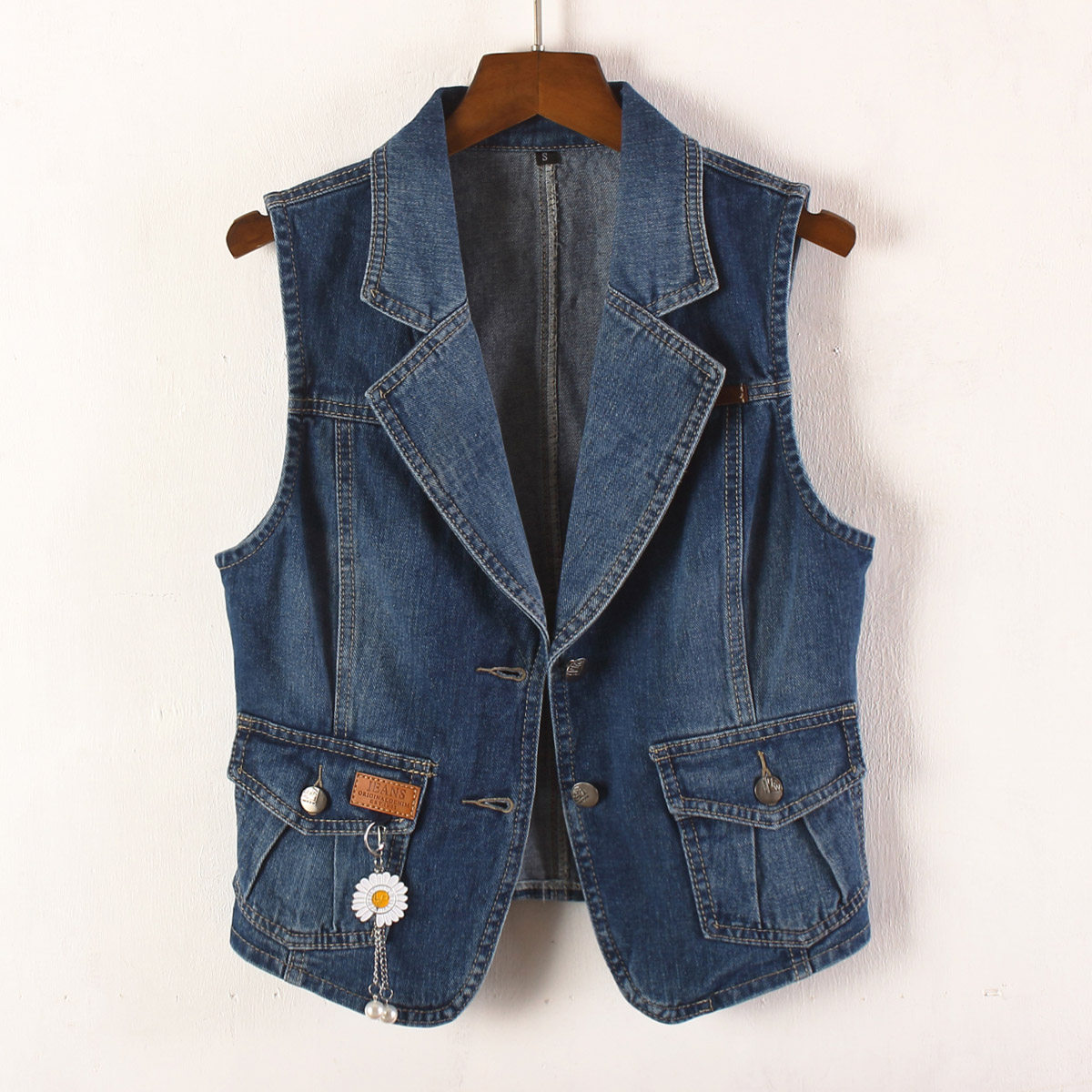 2025女装春秋韩版修身西装领短款无袖牛仔马甲背心马夹外套坎肩上
