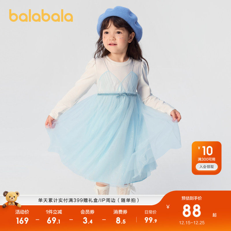 巴拉巴拉童装儿童连衣裙女童裙子拼接小童网纱公主洋气甜美春秋装