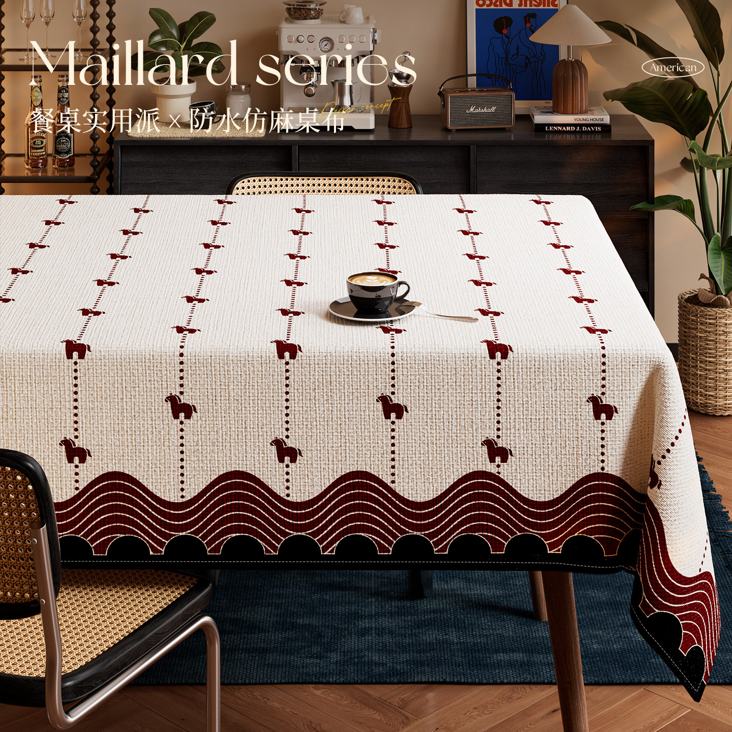 新年仿麻轻奢高级感防水防烫茶几专用餐桌布圆桌长方形垫2026新款