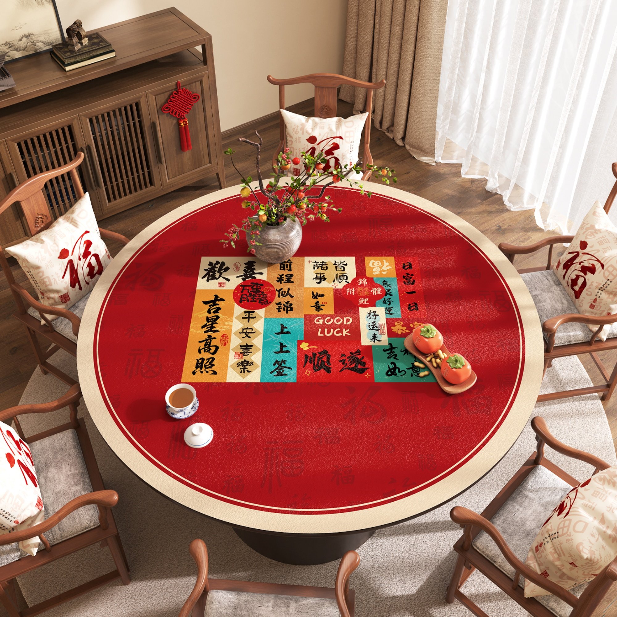 红色喜庆过年圆桌桌布防水防油免洗圆形餐桌布圆桌子台布福字新款