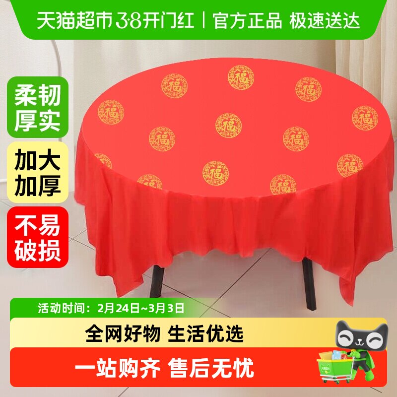 新年一次性桌布圆桌过年乔迁之喜新居搬家用喜宴春节福字红色台布