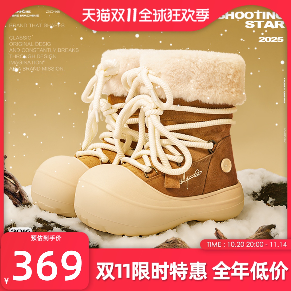 明星同款厚底MOON月亮靴2025冬季新款滑雪鞋保暖防滑长筒雪地靴女