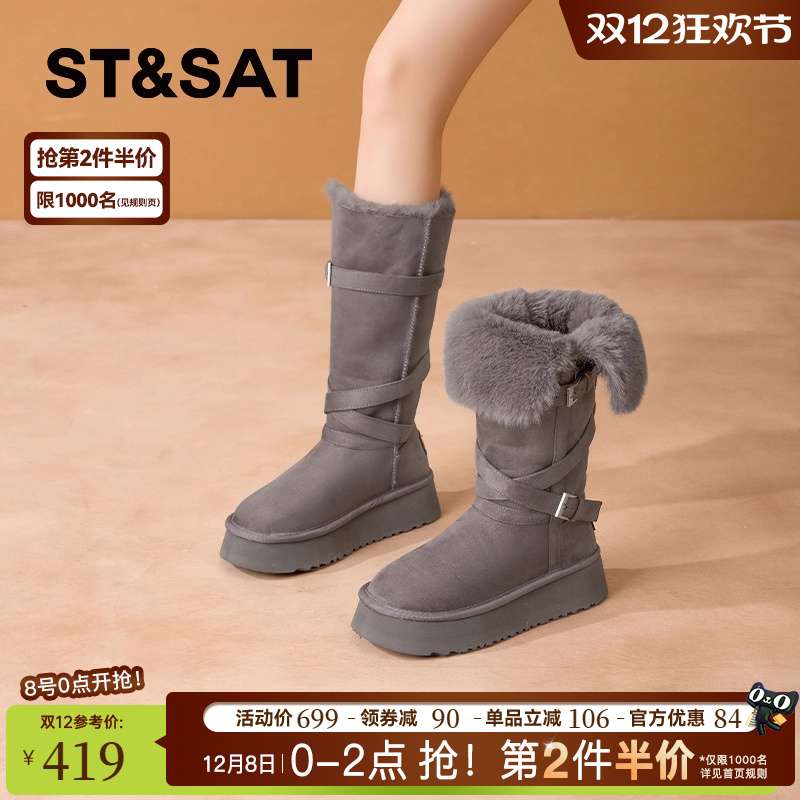星期六灰色长筒雪地靴女2025新款冬季厚底加绒棉靴毛毛棉鞋【直】