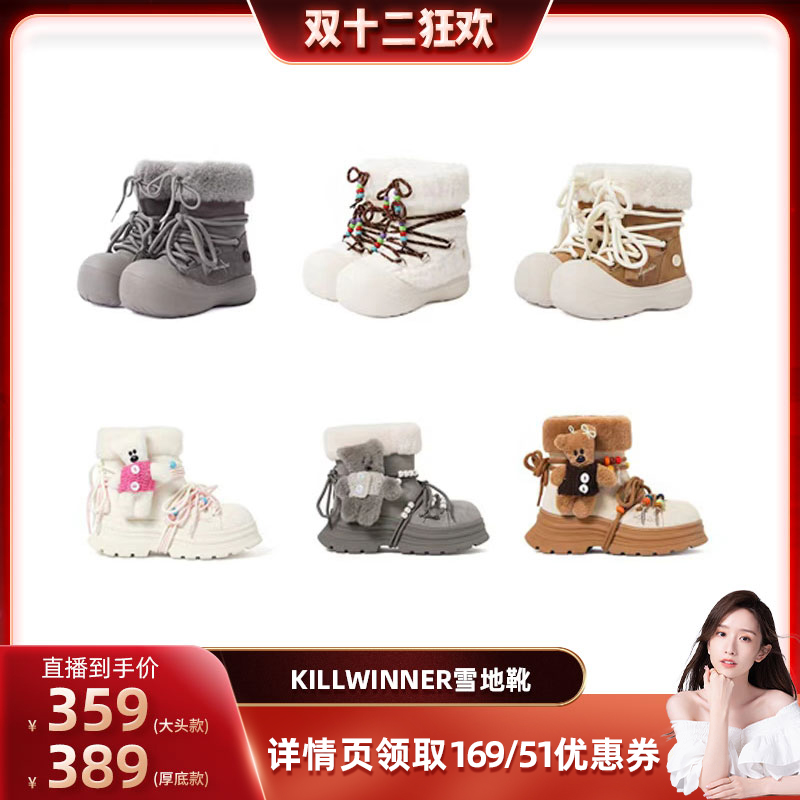 【林小宅同款】KILLWINNER 短毛长筒雪地靴 冬款加绒靴男女同款KW