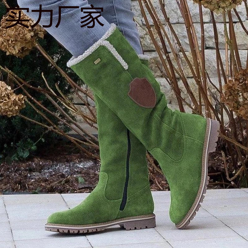 2025亚马逊冬季新款长筒雪地靴侧拉链翻遍圆头高筒女士大码雪地靴