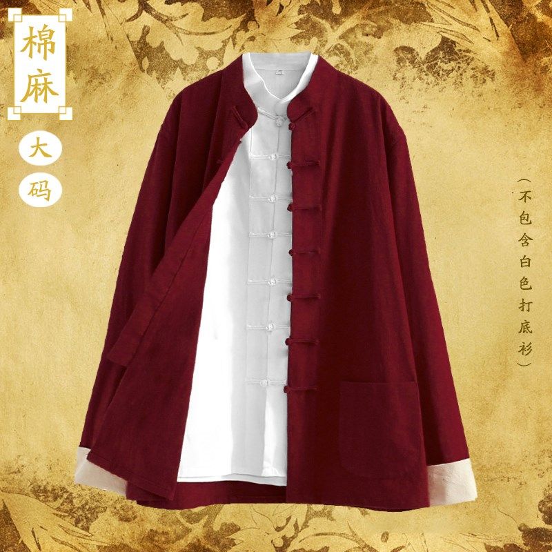 亚麻青年红色中国风男装休闲盘扣中式唐装外套老年人爸爸衣服大码