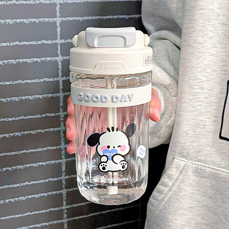 库洛米玻璃杯女高颜值便携学生水杯耐高温双饮带吸管可爱卡通杯子