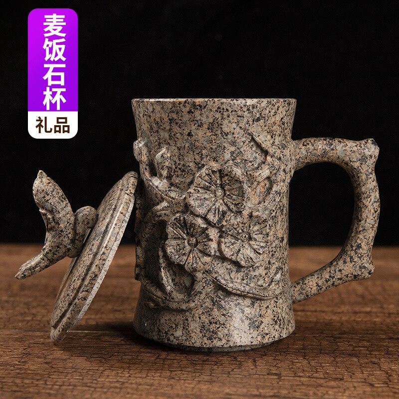 麦饭石杯子家用i石雕茶杯浮雕杯摆件茶具男士水杯大容量父亲节礼