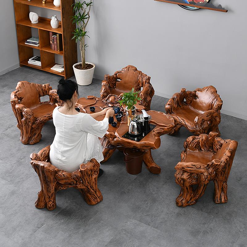 仿木根雕茶几桌椅组合套装茶具一体办公室户外庭院中式泡茶台家用