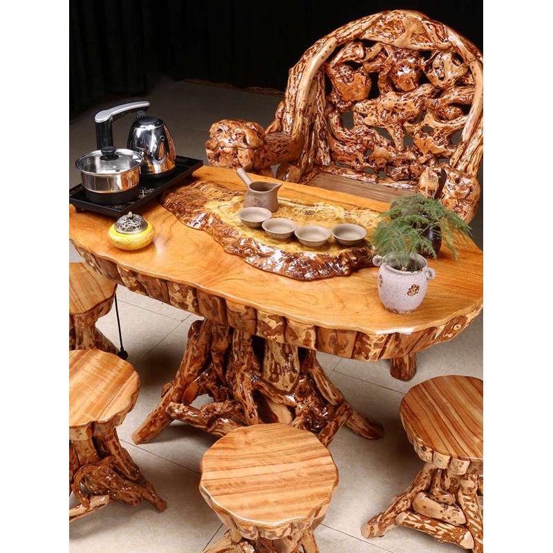 根雕茶几桌客厅家用小户型纯实木天然整体树根茶海特价茶桌椅阳台