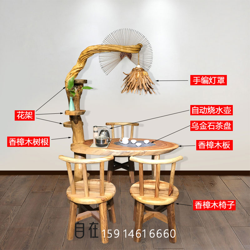 实木根雕茶台整体树根香樟木雕大型茶几阳台树桩原木头茶桌椅组合