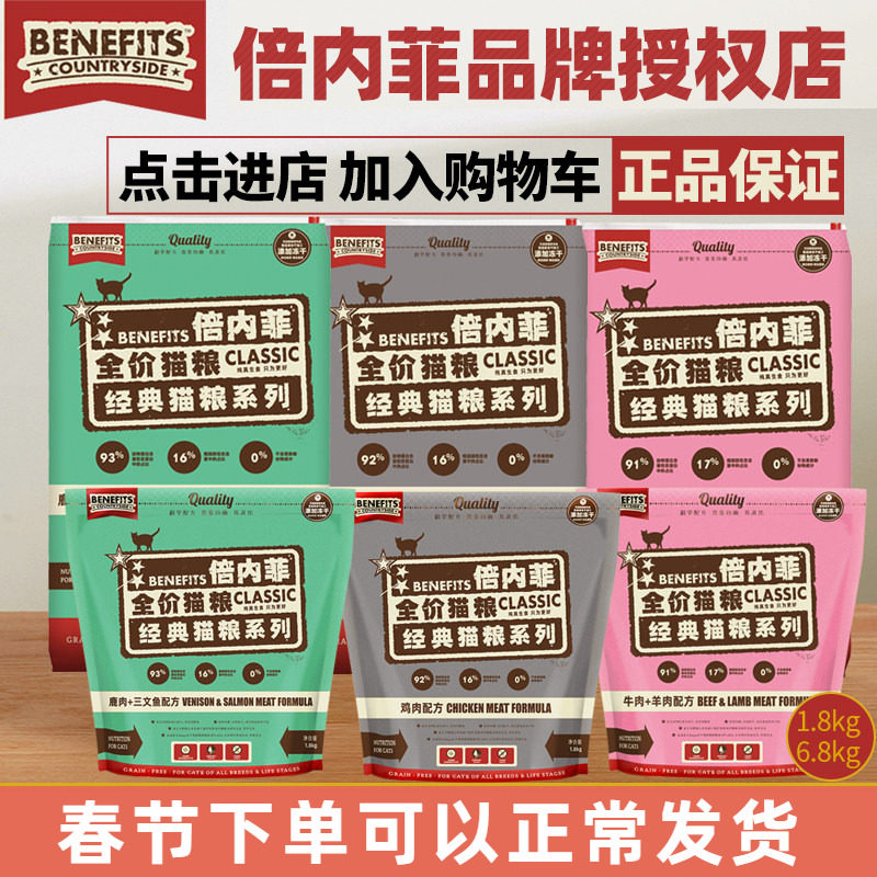 倍内菲猫粮1.8KG天然无谷冻干鸡肉牛肉三文鱼红肉成幼猫营养6.8kg