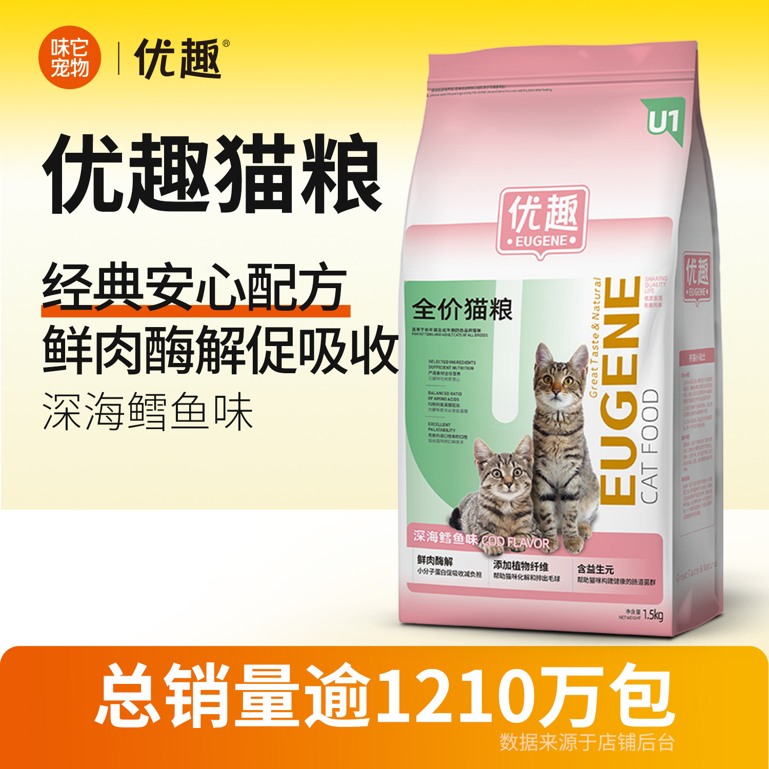 优趣猫粮幼猫成猫10kg天然海洋鱼肉味小猫全价食品大袋20斤实惠装