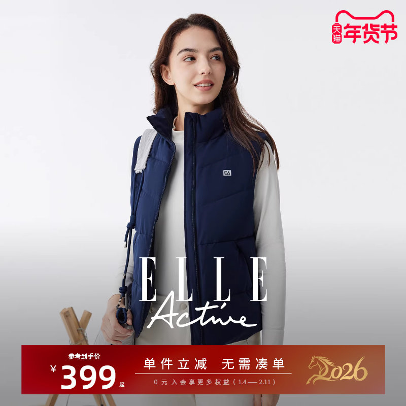 ELLE Active高级感简约立领棉服马甲女户外运动轻盈保暖背心外套