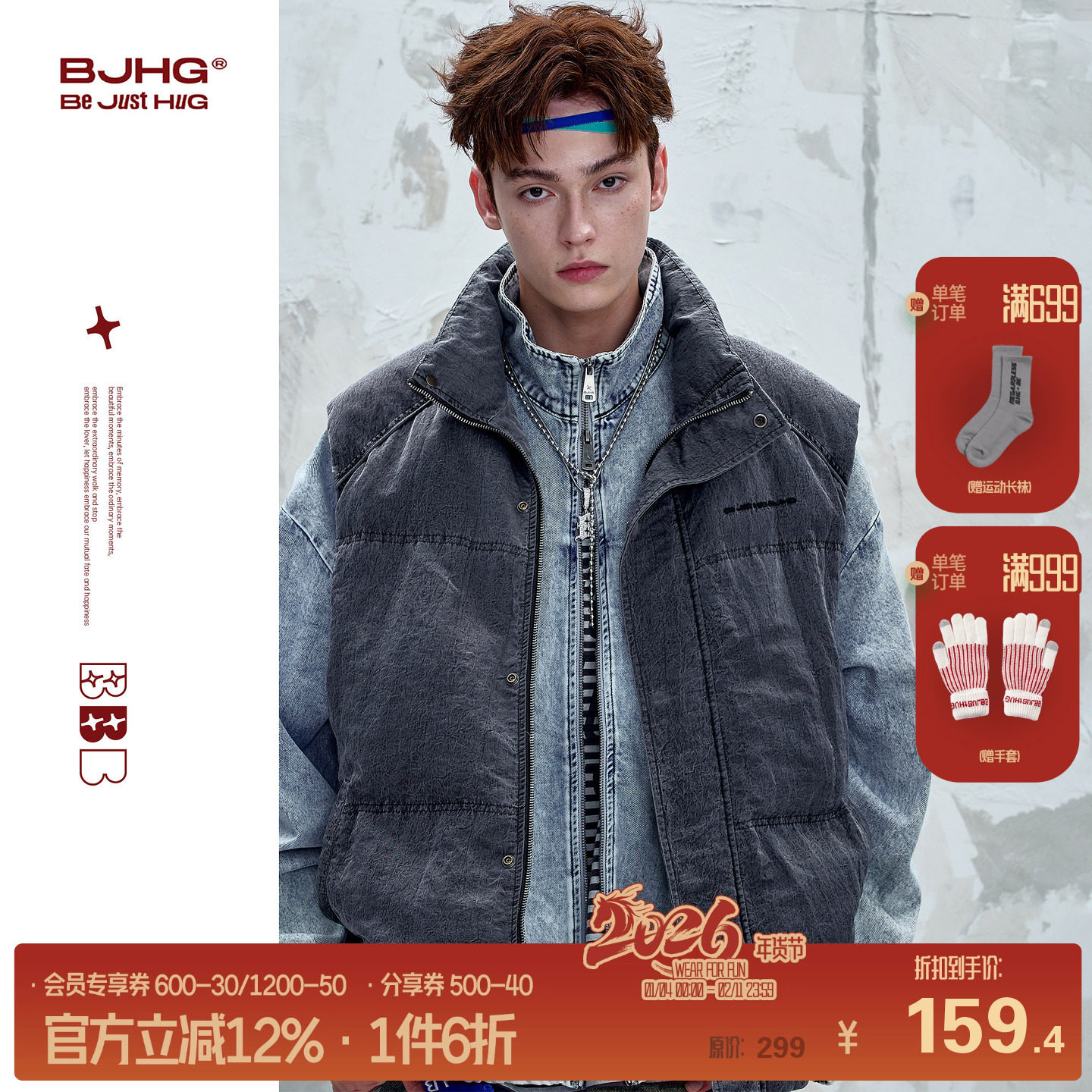 BJHG不计后果珍珠棉马甲男装冬季棉服美式复古保暖背心棉衣外套女