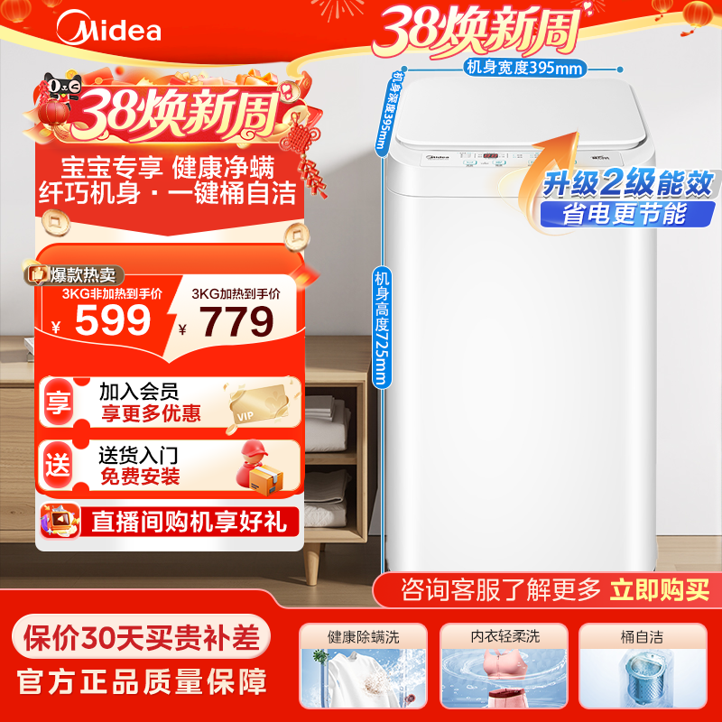 美的家用小型迷你全自动内衣煮洗母婴儿童宝宝专用婴儿洗衣机2.5