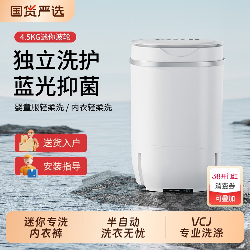 VCJ迷你家用洗衣机内衣小型洗脱一体宿舍全半自动单筒桶婴儿童