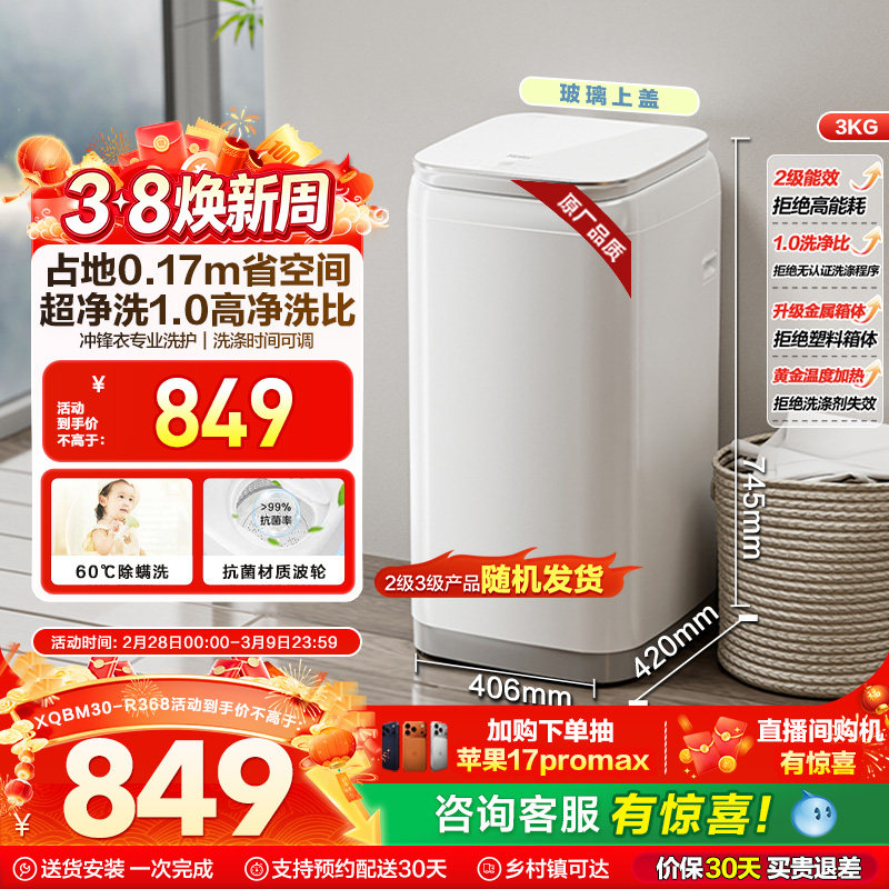 【二级能效升级版】小米米家洗衣机迷你Pro3kg儿童家用内衣除菌