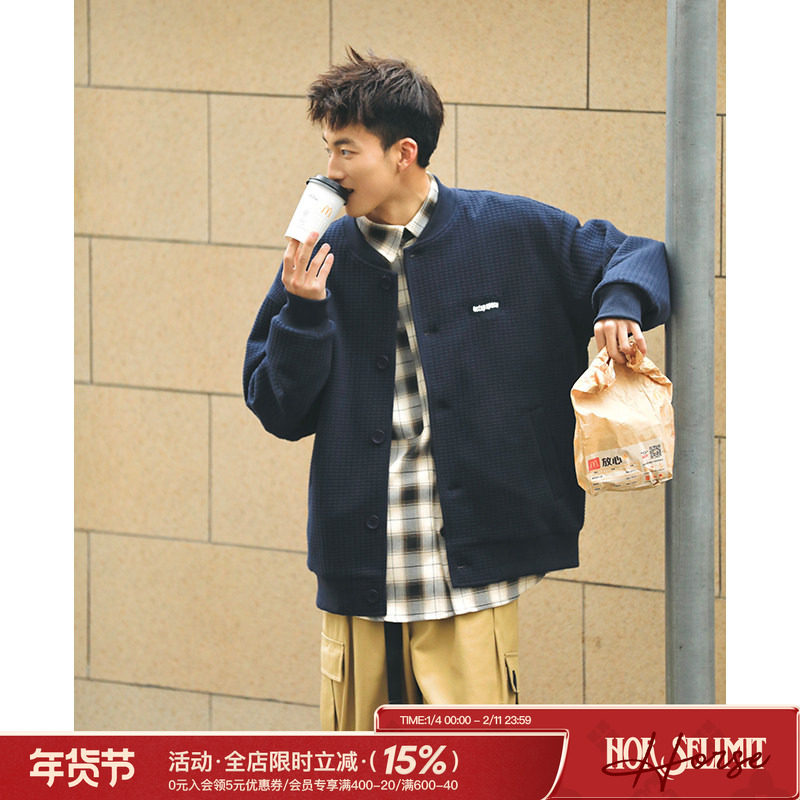 吕小虎华夫格棒球服外套男秋季情侣美式复古休闲开衫卫衣男生夹克