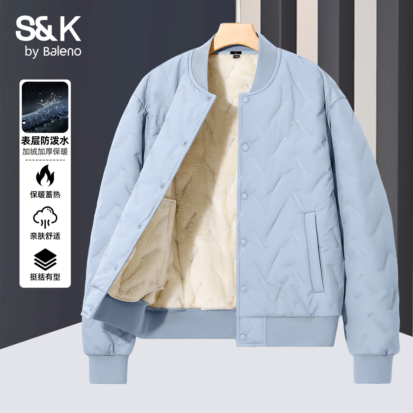 班尼路S&K棉服男款冬季加厚外套男士夹克衫高级棒球领加绒棉衣男A