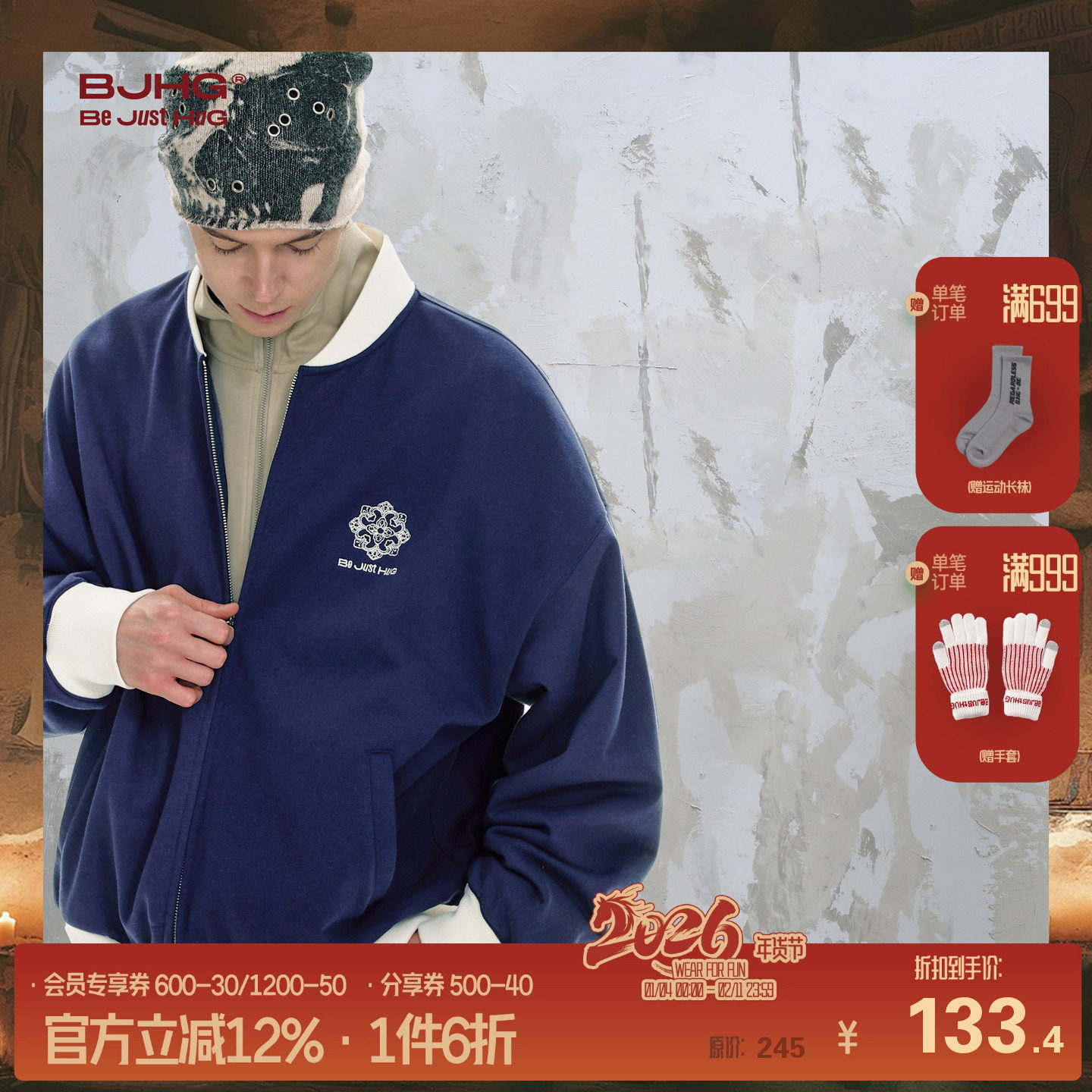 BJHG不计后果美式棒球服外套男款秋冬新款男装设计感开衫卫衣夹克