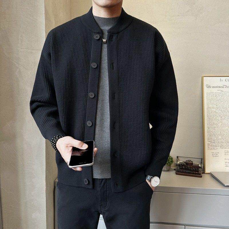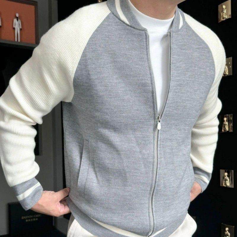 春秋季棒球领开衫毛衣外套男肌理感羊毛混纺立领夹克2025新款男装