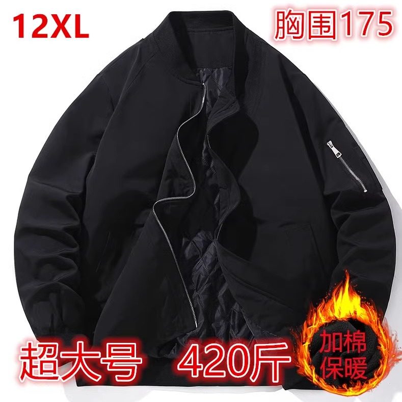 400斤大码男装美式飞行员加绒加厚外套男潮牌棒球领机车夹克衫300