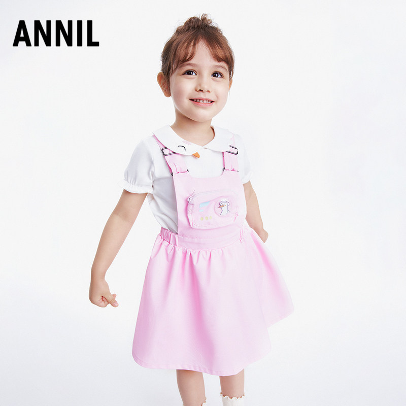 安奈儿童装女童背带裙2023夏新款宝宝洋气可爱半身裙小女孩A字裙
