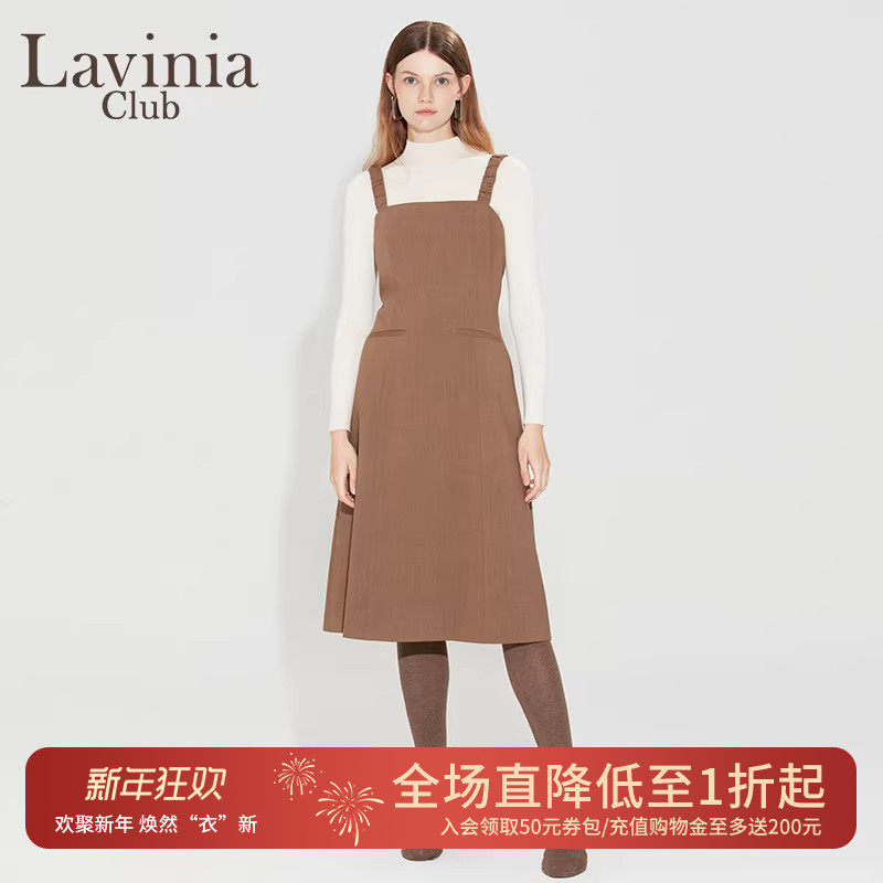 Lavinia方领无袖连衣裙女春秋新款时尚百搭A字束腰显瘦背带裙
