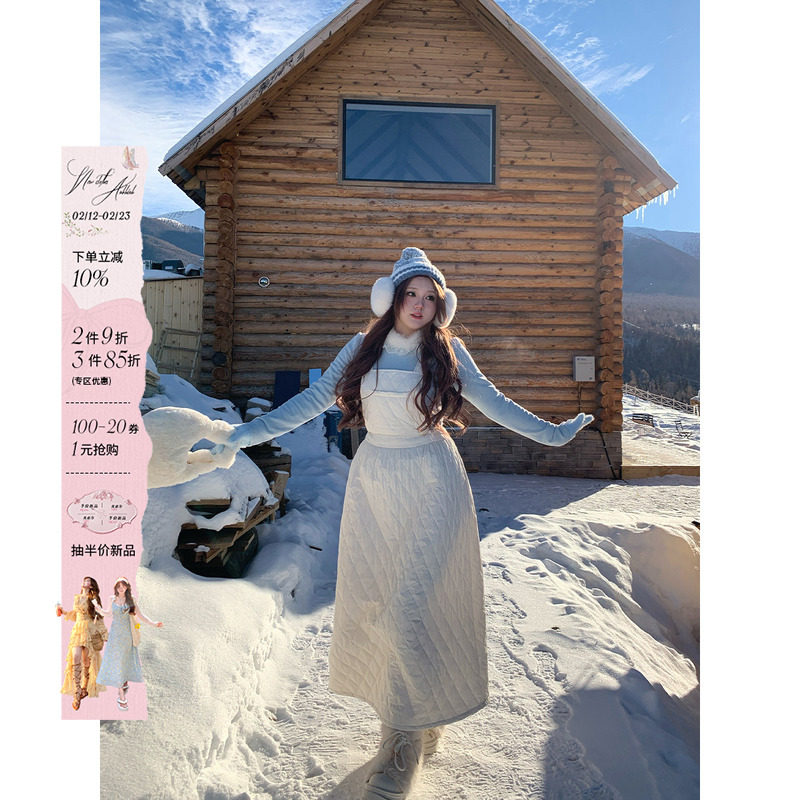 森女部落原创雪人羊羔绒背带裙A字春秋连衣裙套装2025年新款裙子