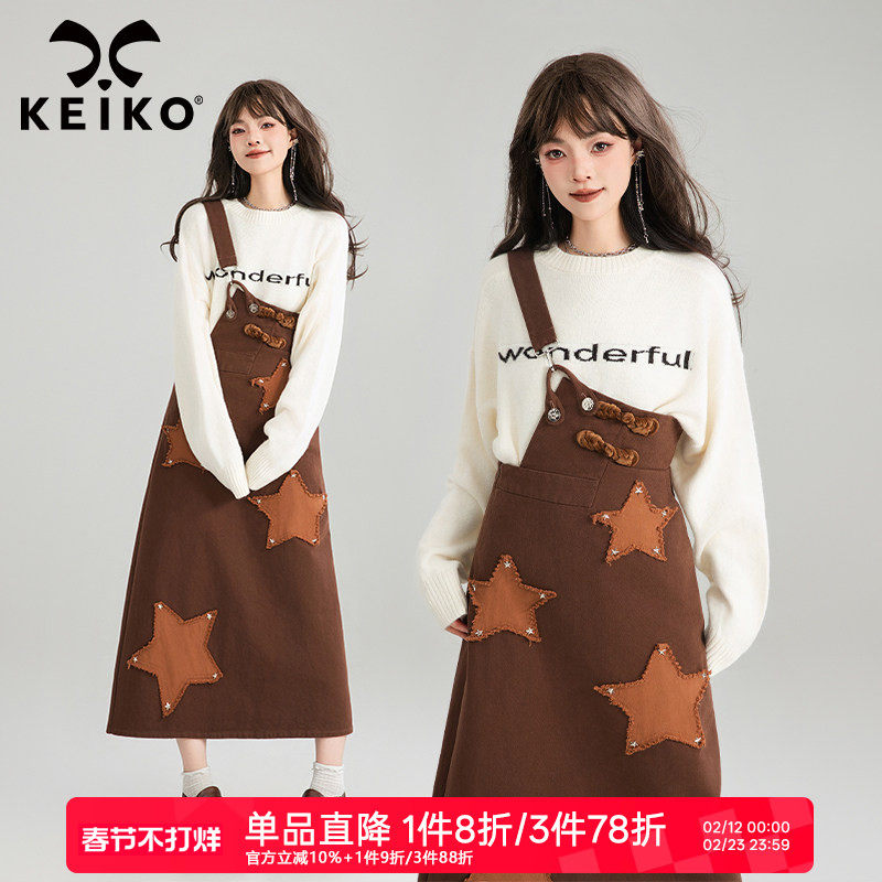 KEIKO艺术感复古牛仔背带裙26春季小众设计印花遮肉显瘦a字连衣裙