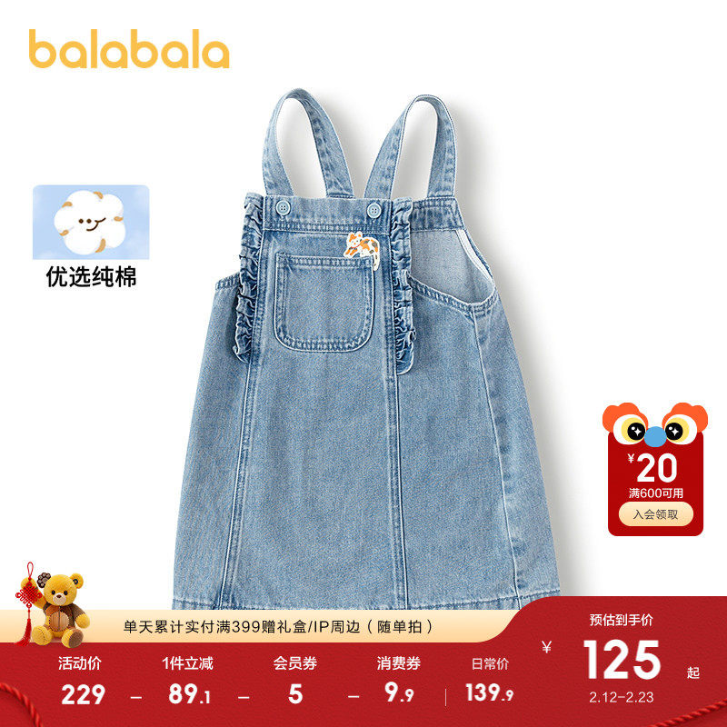 巴拉巴拉童装儿童连衣裙女童春秋装纯棉牛仔背带裙A字型裙子时髦