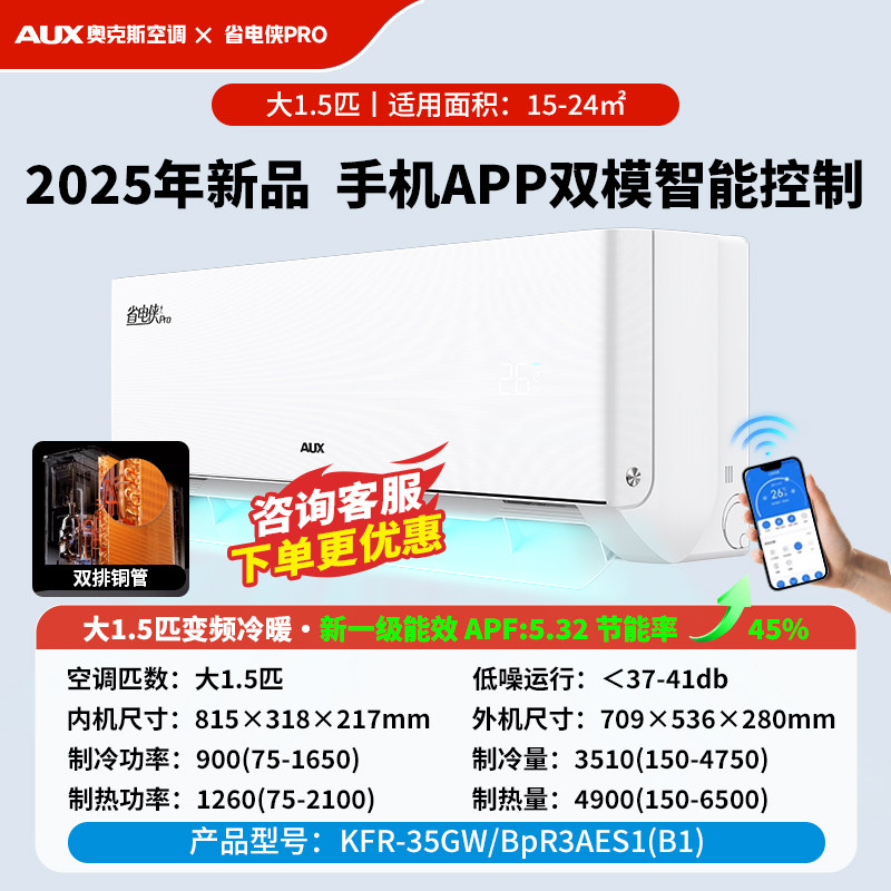 奥克斯空调 KFR-35GW/BpR3AQG29(B1)大1.5匹新一级空调