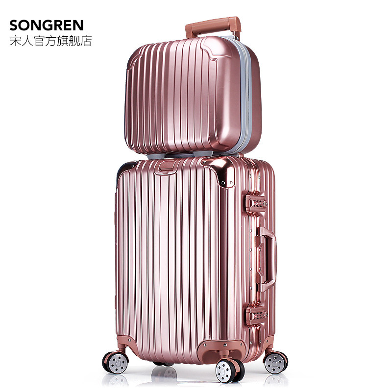 宋人复古行李箱子母箱铝框手拉杆箱玫瑰金女旅行箱红色结婚箱24寸
