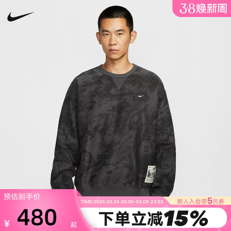 Nike耐克男子加绒圆领上衣冬季迷彩印花运动卫衣套头衫HV4119-254