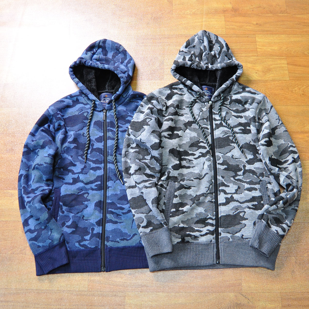 外贸美单 冬季男士加绒加厚保暖迷彩连帽休闲针织开衫毛衣卫衣潮