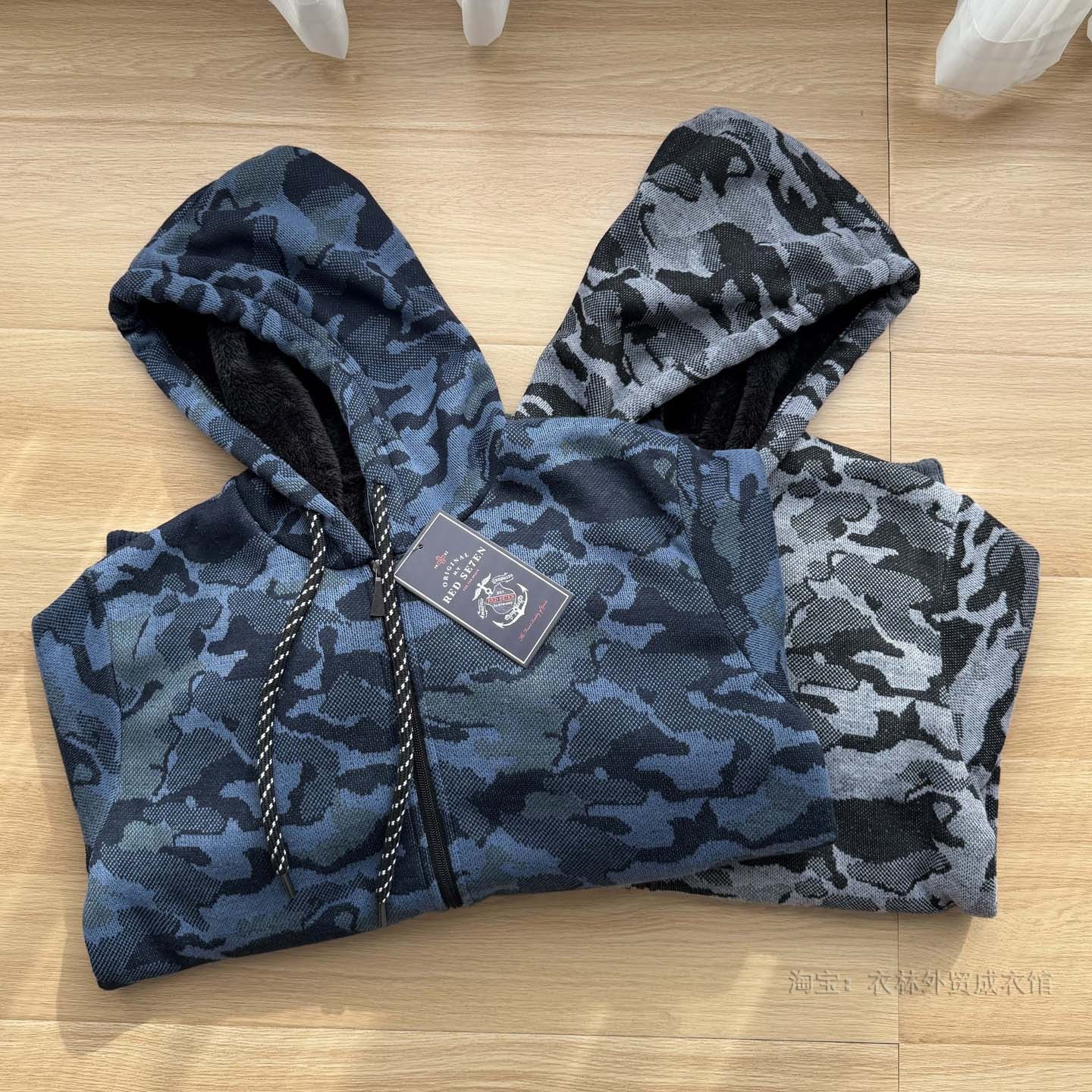 【美单~加绒保暖+外贸尾货】秋冬季男士户外休闲连帽迷彩开衫卫衣