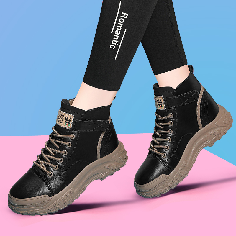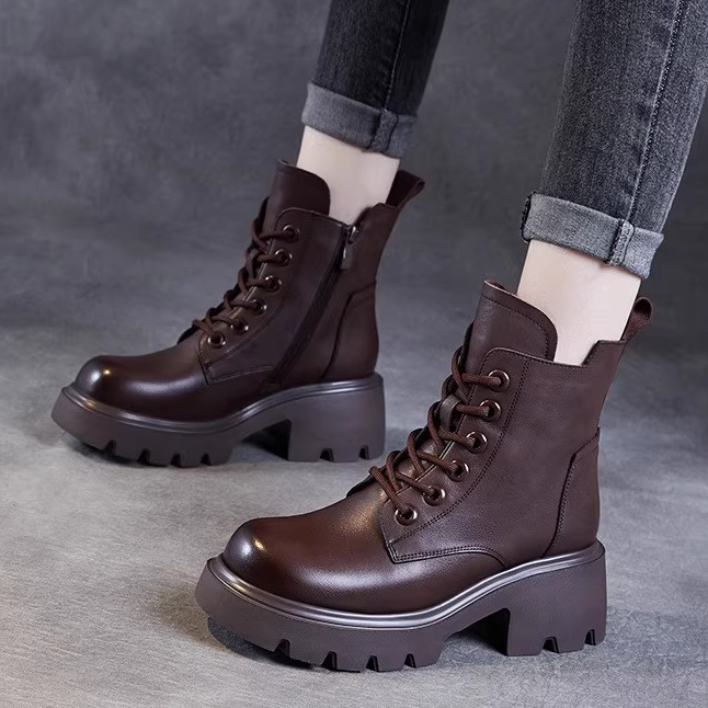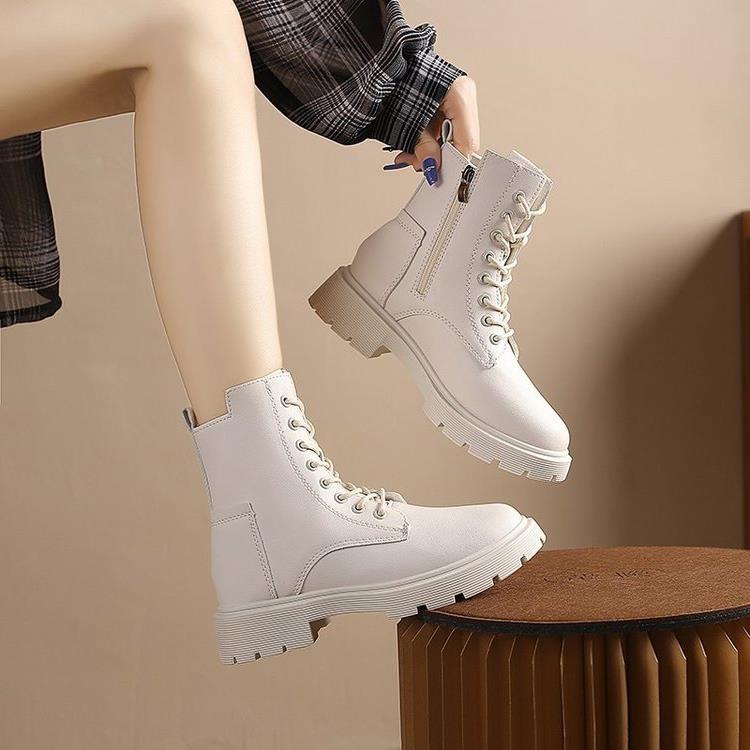 女子冬季高帮真皮马丁靴女2025新款厚底休闲皮鞋英伦短靴春秋靴子