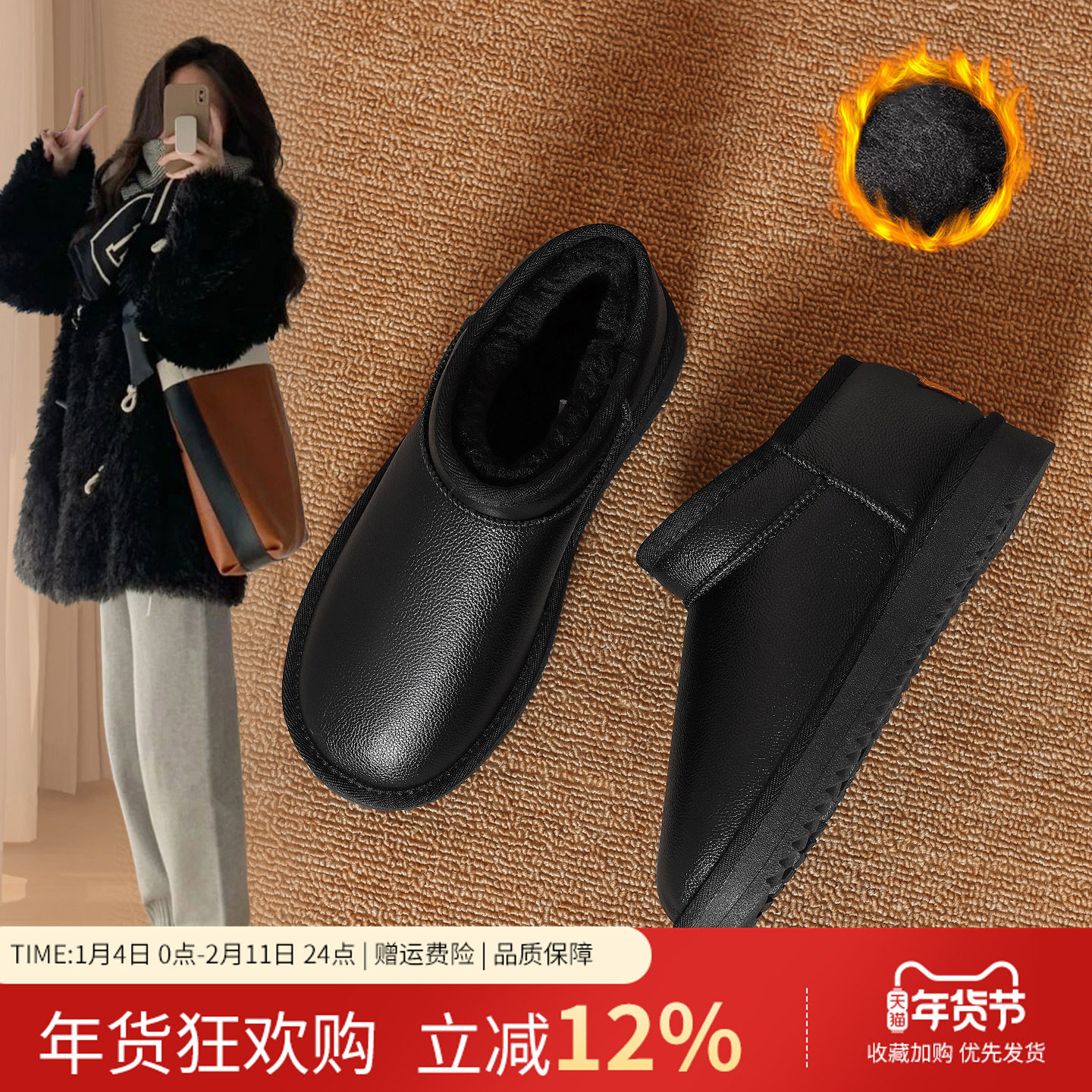 新款雪地靴女绒冬新女子鞋防滑鞋增高马丁靴加短靴款真皮靴子保暖