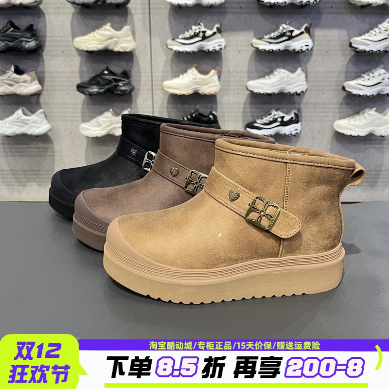 Skechers斯凯奇女子雪地靴秋冬加绒保暖时尚短靴轻便缓震温暖靴子