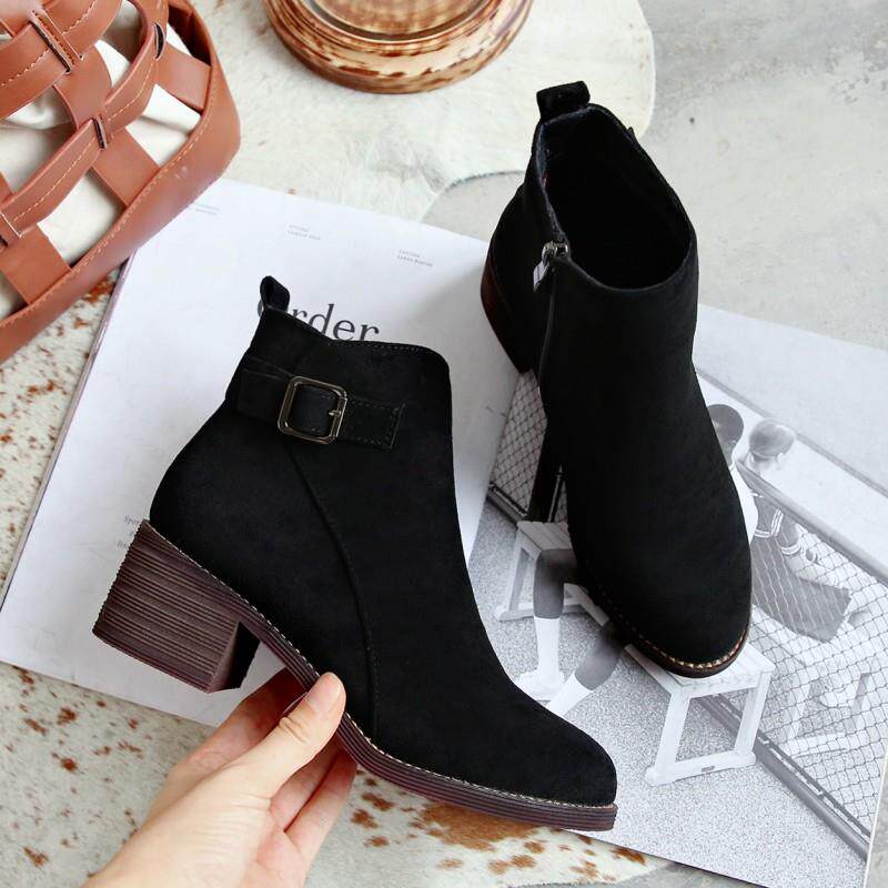 2021春秋款短靴女子单靴侧拉链高跟马丁靴女圆头粗跟女靴韩版靴子