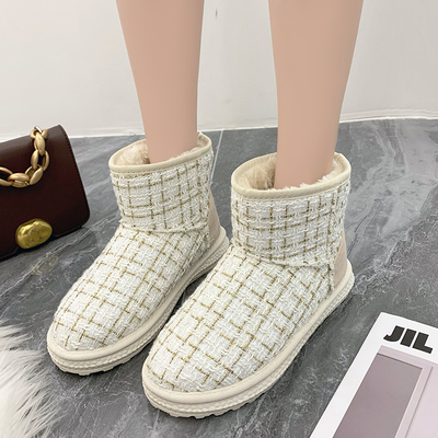 加绒加厚女子雪地靴22冬款保暖皮毛一体短靴软底防滑时尚休闲靴子