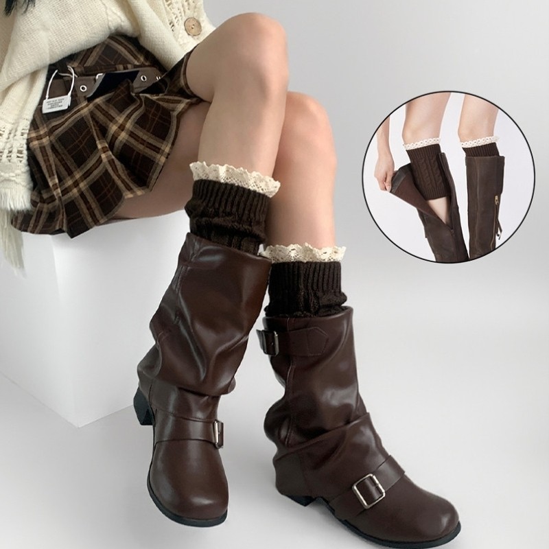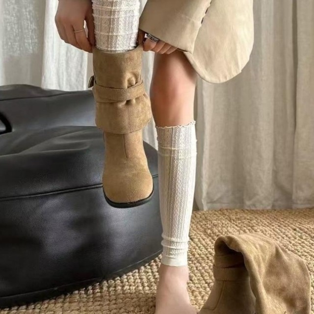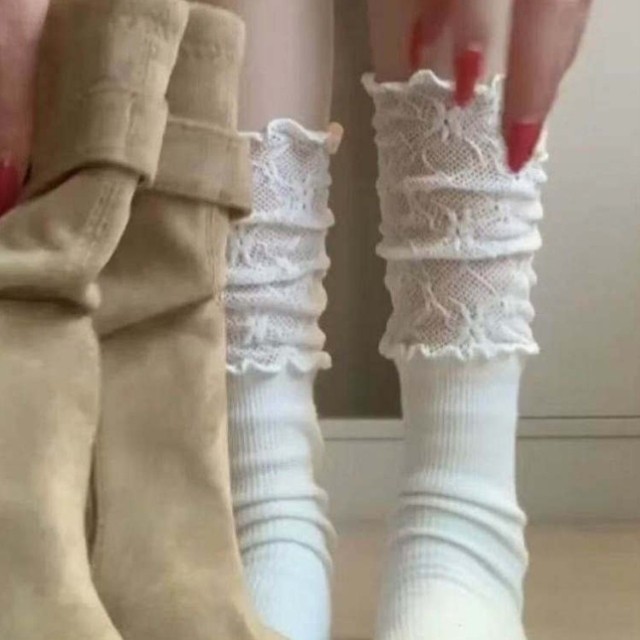 搭配短靴的袜子蕾丝花边拼接堆堆袜靴袜长筒小腿推推袜靴子袜腿套