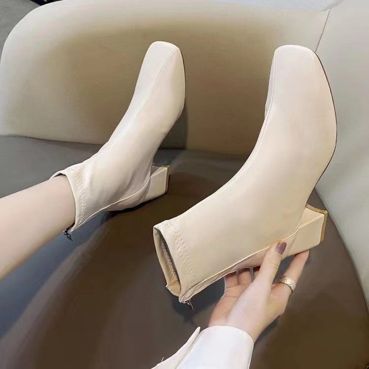 2025春秋款短靴女子单靴侧拉链高跟马丁靴女圆头粗跟女靴韩版靴子